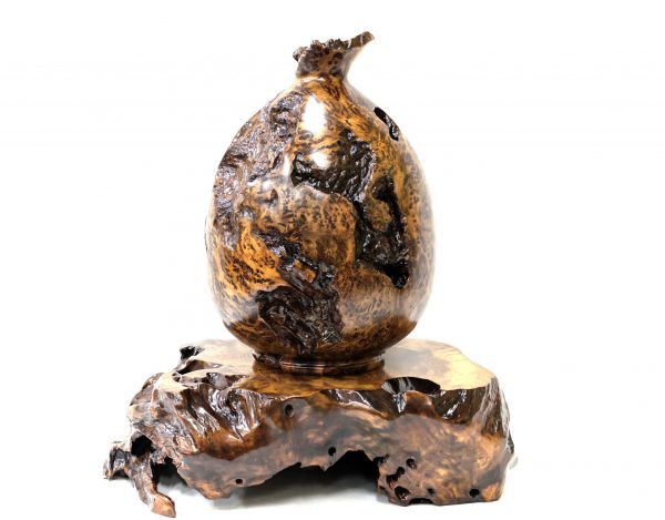 【年鑑作家 川下 幸徳作】 屋久杉 泡瘤壺 花台付  004
