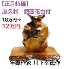 屋久杉 虎瘤 マイちゃぶ台 ... 価格 150000円 120000円 沢山虎杢が入っています サイズ40~45cm✕57cm 板厚1.8cm 総高25.3cm 商品番号マイちゃぶ台018 商品詳細について